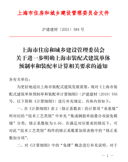 為更好地適應(yīng)上海市裝配式建筑發(fā)展需要,上海市住建委現(xiàn)對《上海市裝配式建筑單體預(yù)制率和裝配率計算細則》進行補充規(guī)定(以下簡稱《計算細則》)。具體內(nèi)容,詳見↓
