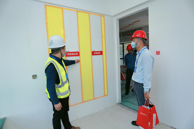 觀摩團(tuán)實(shí)地參觀了樣板引路區(qū)、3層實(shí)體質(zhì)量樣板區(qū)、地下綜合管線及地坪墻身樣板區(qū)和安全體驗(yàn)區(qū)4個(gè)展示區(qū),通過專人講解和答疑、展板介紹、實(shí)地體驗(yàn)等多種方式集中了解了項(xiàng)目裝配式特色和質(zhì)量成果。