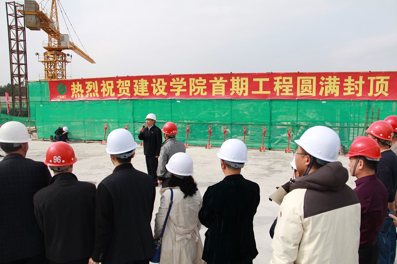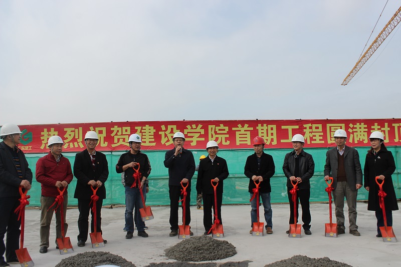 學(xué)院黨委書記葉飛松,黨委副書記李愛卿,副院長(zhǎng)陳躍軍、高歌、蔡?hào)|,籌建辦副主任段習(xí)文、賴林健,省機(jī)施公司黨委書記、董事長(zhǎng)黃斌偉,黨委副書記唐少波,監(jiān)理單位總監(jiān)朱伯強(qiáng),設(shè)計(jì)單位項(xiàng)目負(fù)責(zé)人莊平江等相關(guān)領(lǐng)導(dǎo)出席封頂儀式。我院中層干部參加了封頂儀式。
